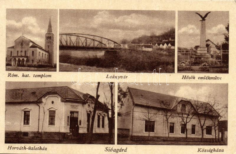 Sióagárd, Leányvár, Hősök emlékműve, Horváth üzletház, községháza, templom, kiadja Horváth János