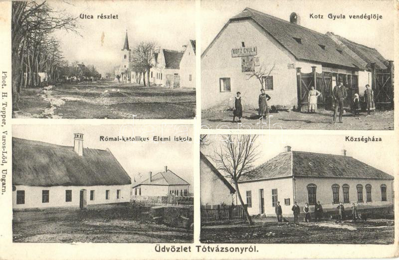 Tótvázsony, Kotz Gyula vendéglője, községháza, római katolikus elemi i...