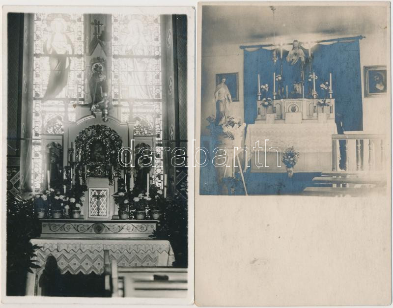 10 db főleg RÉGI magyar városképes fotólap, templom belsők / 10 mostly old Hungarian town-view photo postcards, church interiors