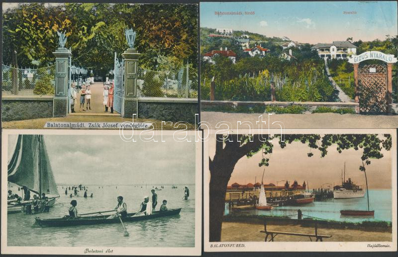 15 db RÉGI városképes lap; Balaton és környéke / 15 pre-1945 Hungarian town-view postcards; Balaton and its surroundings