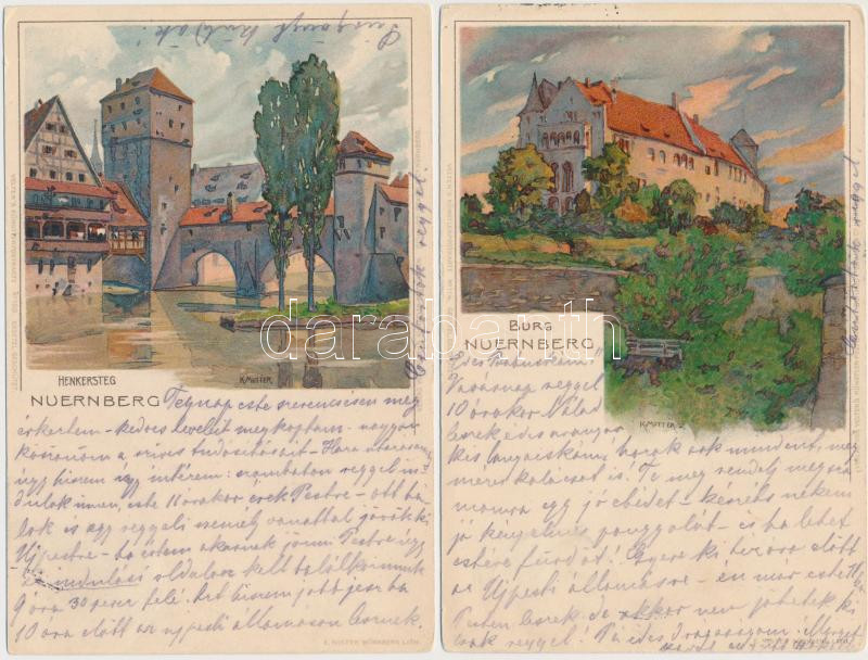 2 × Nürnberg Velten's Künstler-Postkarte, 1 × Ronneburg - 3 db ré...