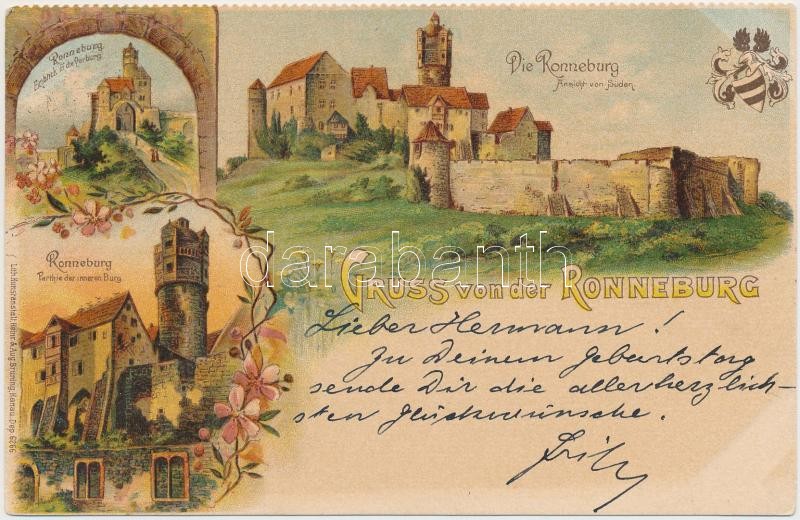 2 × Nürnberg Velten's Künstler-Postkarte, 1 × Ronneburg - 3 db régi litho képeslap / 3 pre-1904 German litho postcards