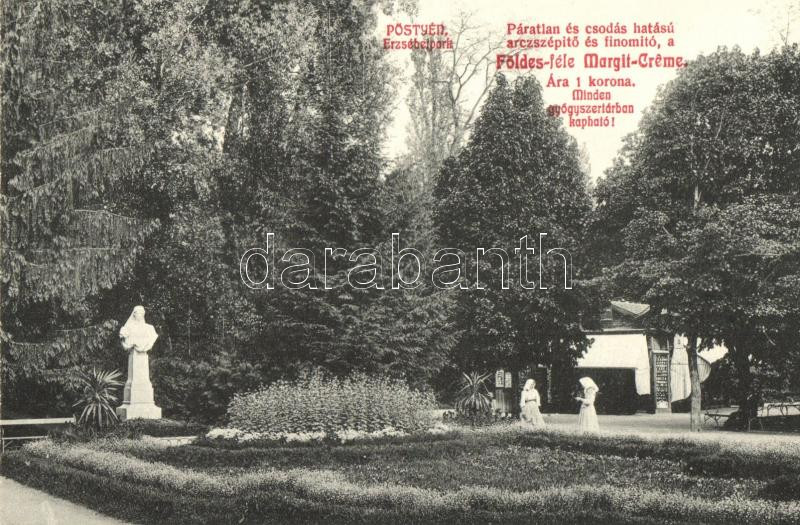 Pöstyén, Erzsébet park, Földes-féle Margit Creme reklám / park, face c...