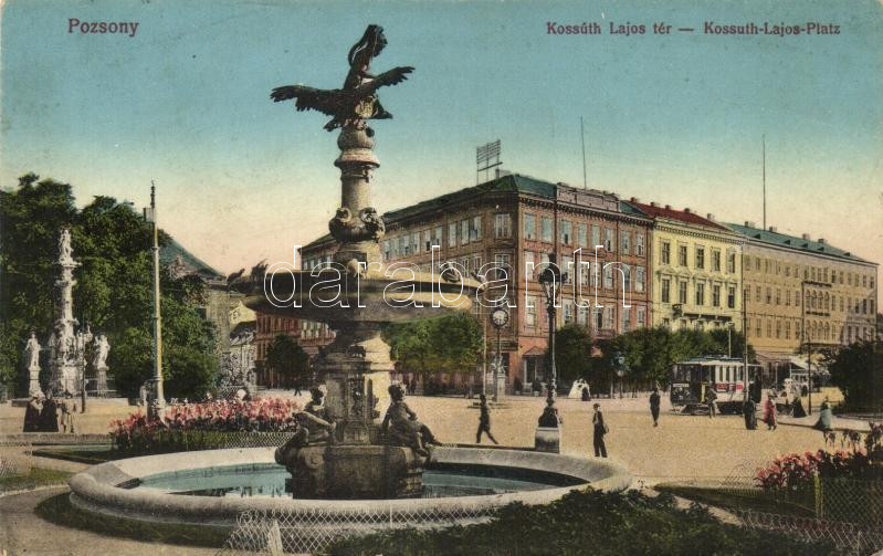 Pozsony, Pressburg, Bratislava; Kossuth Lajos tér, villamos / square, ...