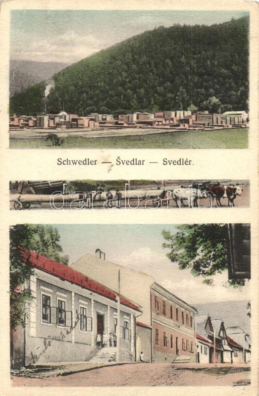 Svedlér, Svedlár; Látkép, utca, faszállítás, kiadja Wilhelm Szilárdy /...