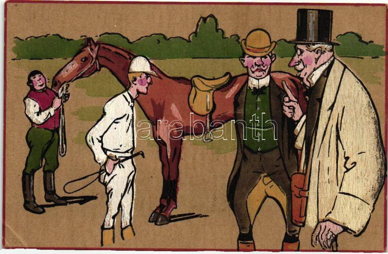 Horse racer, gentlemen, hand-painted art postcards (EK)