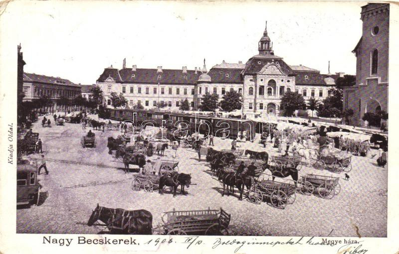 Nagybecskerek, Megyeháza, városi vasút, piac, kiadja Oldal / county ha...