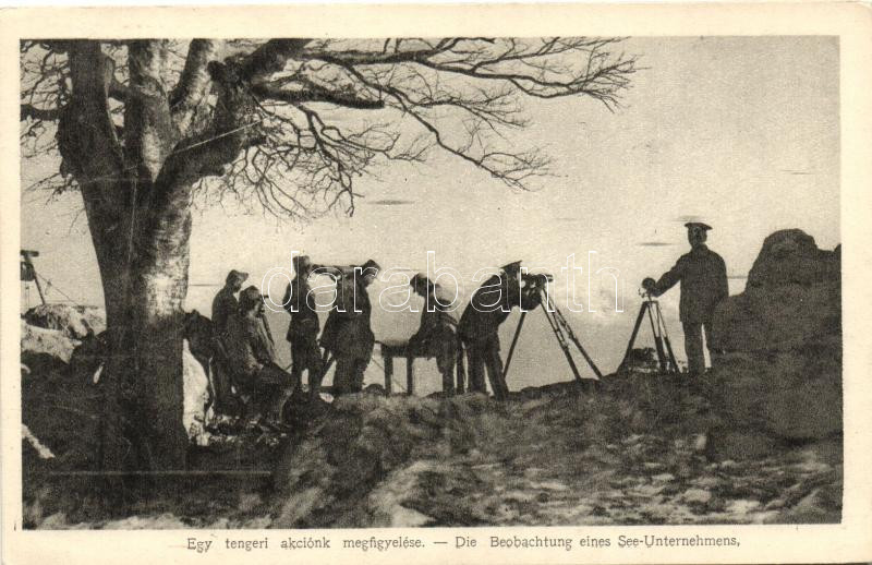 Egy tengeri akciónk megfigyelése; K.u.K. haditengerészet szárazföldi m... https://www.darabanth.com/en/271-Online-auction/271.0/Postcards/Warships~200087/Egy-tengeri-akcionk-megfigyelese-KuK-haditengereszet-szarazfoldi-megfigyeloi-Die-Beobach~II1334210
