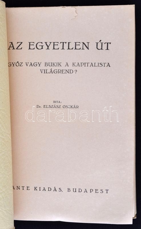 Dr. Elszász Oszkár: Az egyetlen út. Győz vagy bukik a kapitalista vilá... https://www.darabanth.com/en/272-Online-auction/272.0/Books/Books-History~33/Dr-Elszasz-Oszkar-Az-egyetlen-ut-Gyoz-vagy-bukik-a-kapitalista-vilagrend-Budapest-1932-Da~II1353805