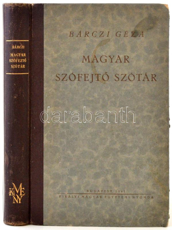 Bárczi Géza: Magyar szófejtő szótár. Budapest, 1941, Királyi Magyar Eg... https://www.darabanth.com/en/272-Online-auction/272.0/Books/Books-Other-rarities~45/Barczi-Geza-Magyar-szofejto-szotar-Budapest-1941-Kiralyi-Magyar-Egyetemi-Nyomda-Kiadoi-~II1381534