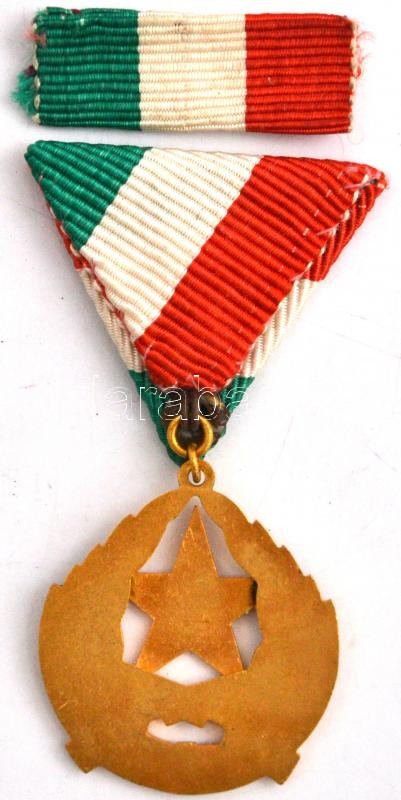 1957. "Munkás-Paraszt Hatalomért Emlékérem" aranyozott, zománcozott Br kitüntetés mellszalagon, tokban, szalagsávval T:2