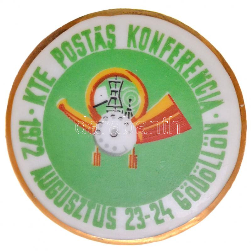 1972. "KTE Postás Konferencia - 1972. Augusztus 23-24. Gödöllőn" festett, jelzett Hollóházi jelvény (38mm) T:1