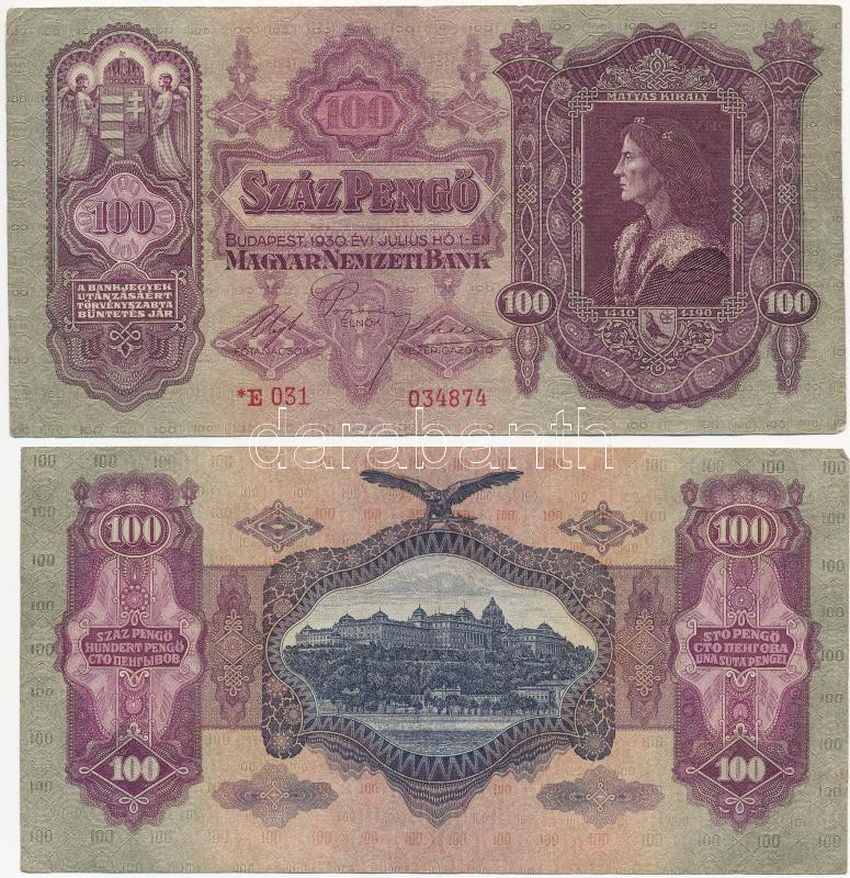 https://www.darabanth.com/en/272-Online-auction/272.0/Numismatics/Hungarian-Banknotes~300007/1930-100P-9x-mind-csillagos-sorozatszammal-TII-III--Adamo-P17A~II1383348