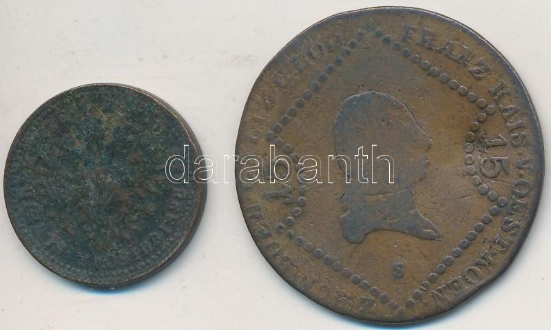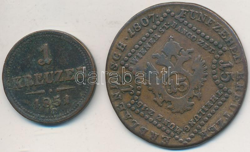 1807S 15kr Cu kissé hajlott + 1851E 1kr Cu T:3