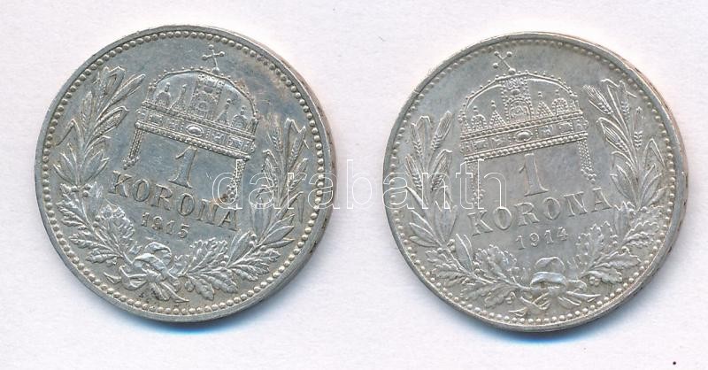 https://www.darabanth.com/en/272-Online-auction/272.0/Numismatics/Hungarian-coins-and-coins-with-Hungarian-mint-marks~300008/1914-1915KB-1K-Ag-Ferenc-Jozsef-2x-T2~II1381768