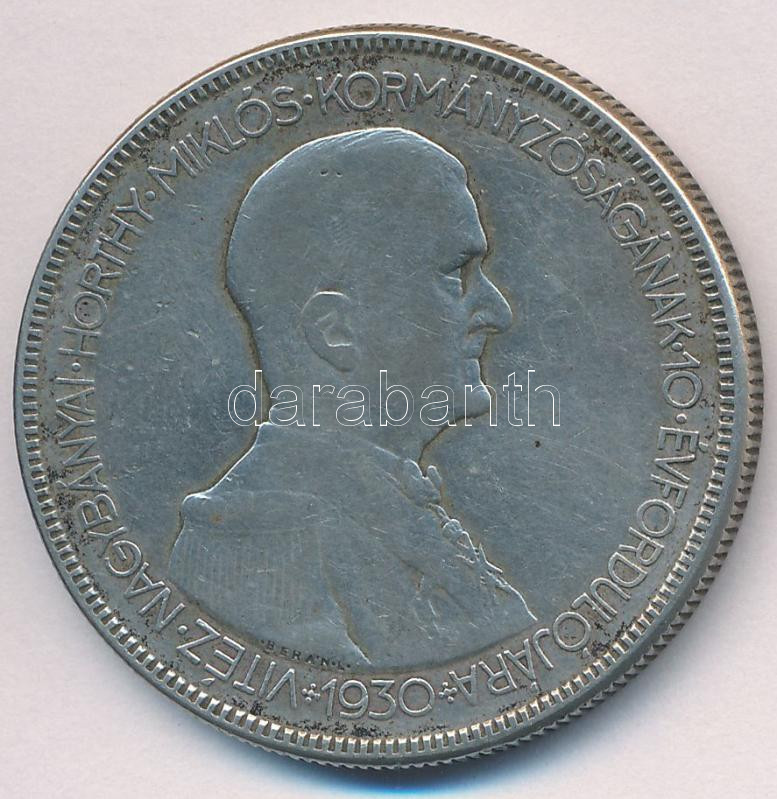 https://www.darabanth.com/en/272-Online-auction/272.0/Numismatics/Hungarian-coins-and-coins-with-Hungarian-mint-marks~300008/1930-5P-Ag-Horthy-jobbra-T3--Adamo-P8~II1388347