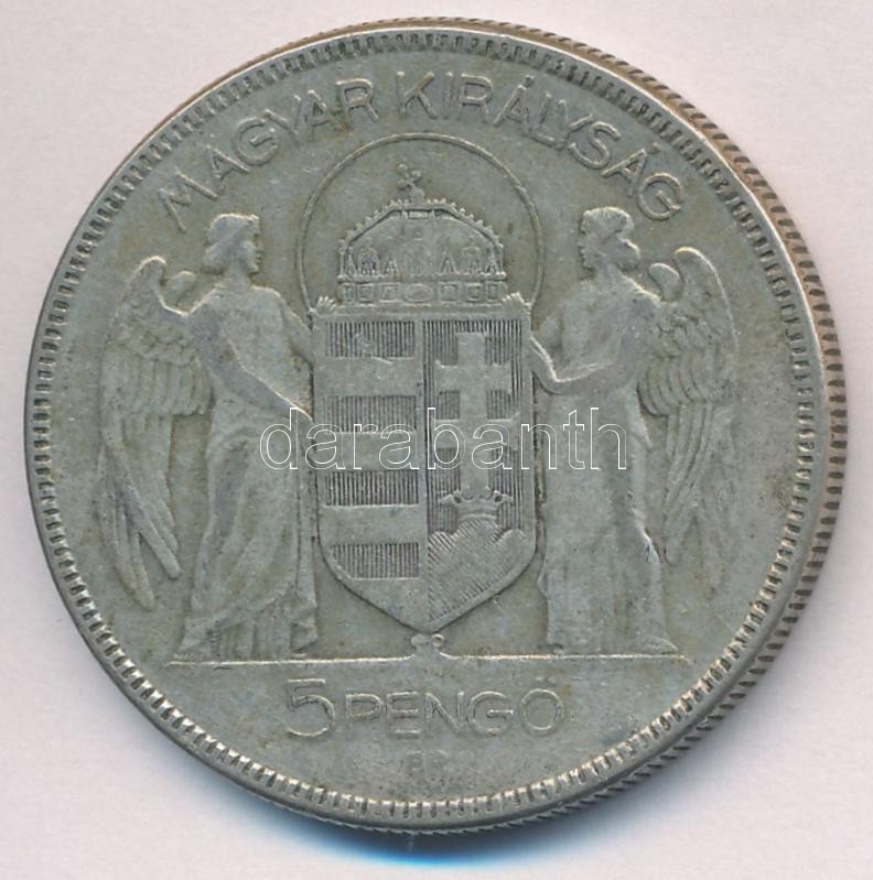 https://www.darabanth.com/en/272-Online-auction/272.0/Numismatics/Hungarian-coins-and-coins-with-Hungarian-mint-marks~300008/1930-5P-Ag-Horthy-jobbra-T3-Adamo-P8~II1388343