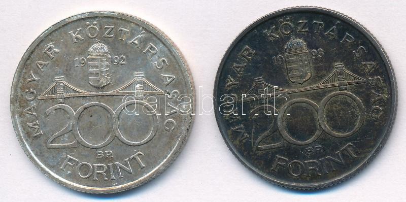 1992-1993. 200Ft Ag "MNB" (2x) T:2 oxidáció