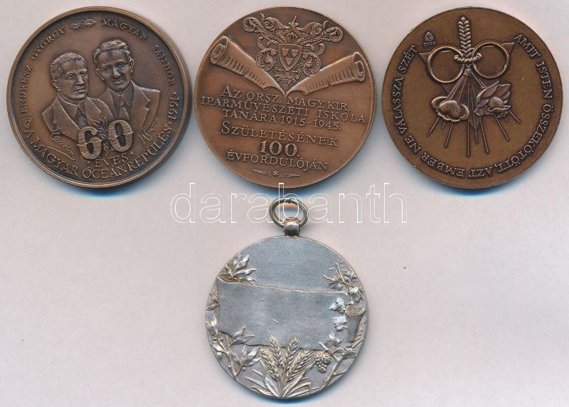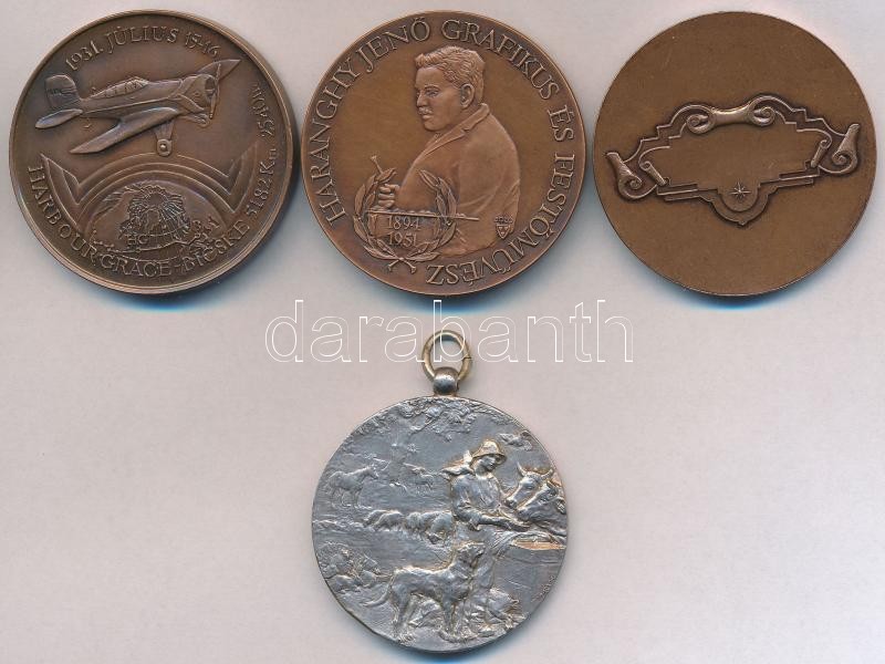 Description: 4db klf emlékérem, közte Bozó Gyula (1913-2004) 1991. "60 éves a magyar óceánrepülés Endresz György - Magyar Sándor / Harbour Grace - Bicske" Br emlékérem (42,5mm) + 1994. "Haranghy Jenő születésének 100. évfordulójára" Br emlékérem (42,5mm) T:1-,2