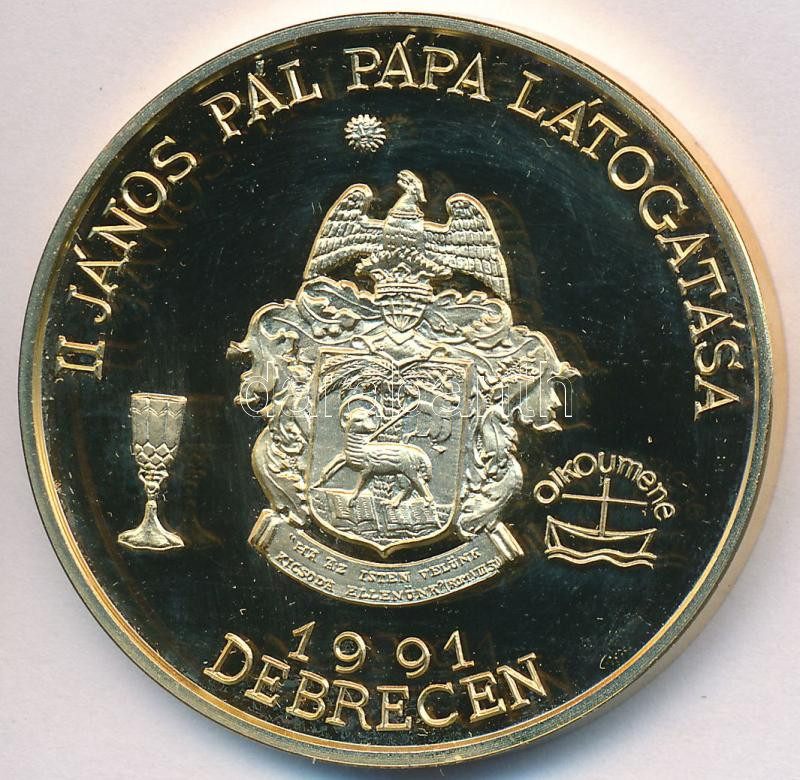 Bognár György (1944-) 1991. "II.János Pál pápa látogatása - Debrecen" aranyozott emlékérem (65mm) T:PP ujjlenyomat