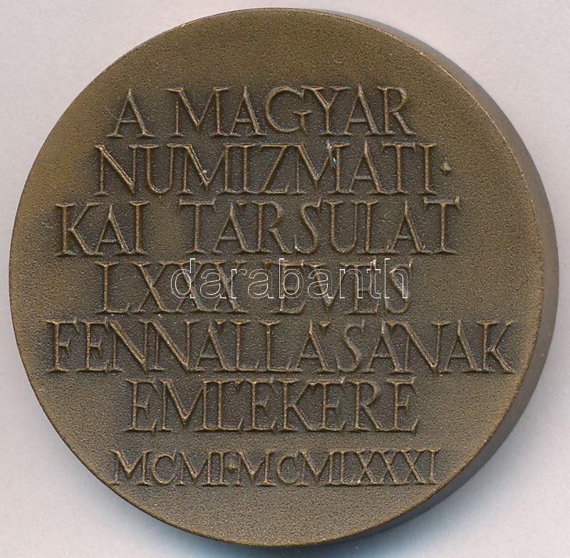 Kiss Nagy András (1930-1997) 1981. "A Magyar Numizmatikai Társulat LXXX éves fennállásának emlékére" Br emlékérem (40mm) T:1-