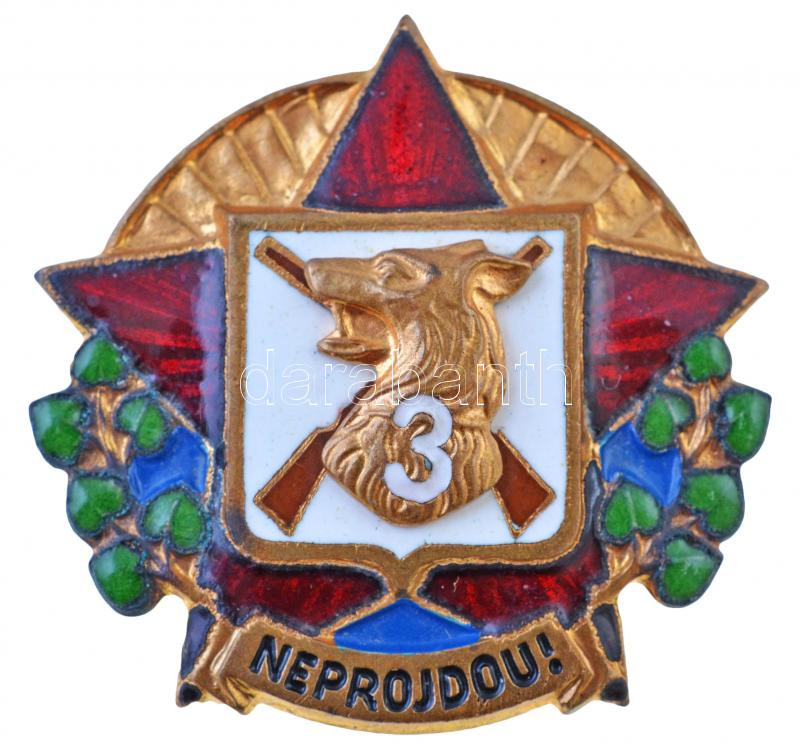 Description: Csehszlovákia ~1970-1980. "Neprojdou! (Nem jutnak át!)" zománcozott fém határőrjelvény III. osztálya (37x38mm) T:1-