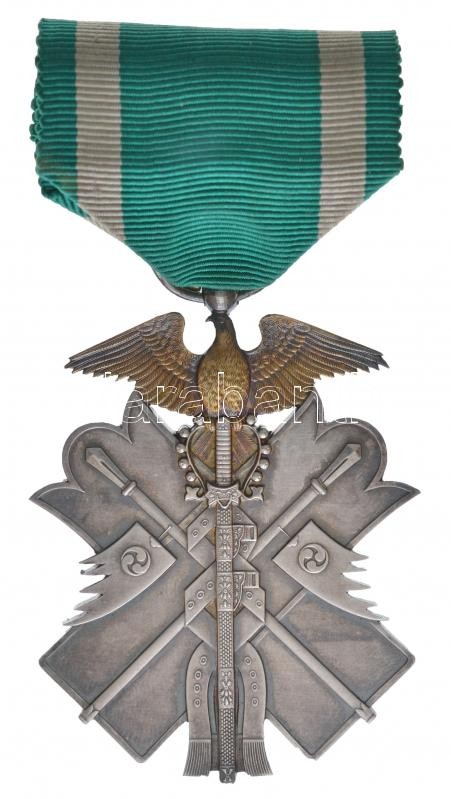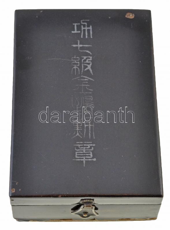 Description: Japán 1890-1945. "Arany Kánya Rend VII. osztálya" jelzetlen Ag kitüntetés mellszalagon, eredeti dísztokban (42,5x52mm) T:1-,2 sérült tok