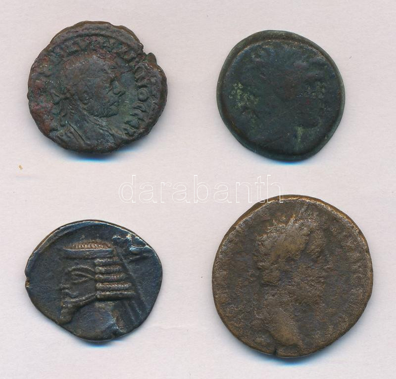 4db ókori pénz hamisítványa, közte egy párthus drachma hamisítványa T:...
