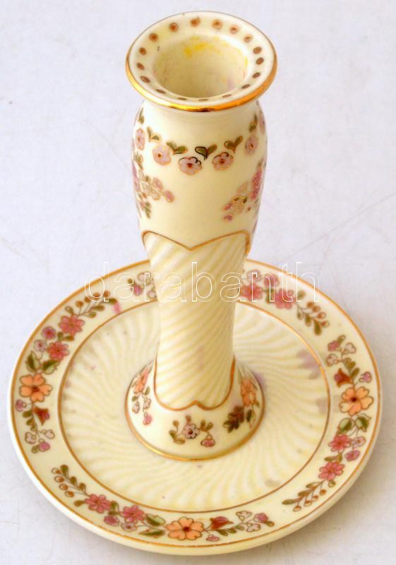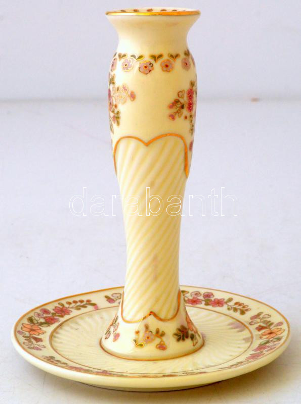 Zsolnay virág mintás gyertgyatató, kézzel festett, jelzett, hibátlan, m:14 cm