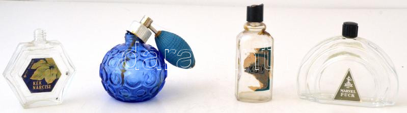 4 db különféle parfümös üveg, márkajelzettek, kis kopásnyomokkal, külö...