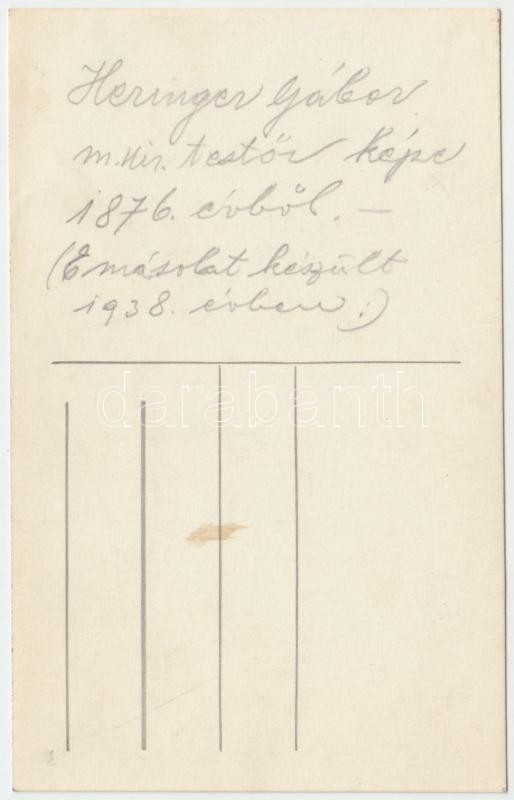 1938 Magyar királyi testőr képe 1876-ból, a másolat 1938-ban készült, fotólap, hátoldalon feliratozva, 13x9 cm