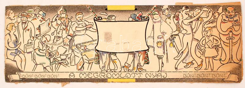 1922 Schima Bandi (1882-1959): A megromlott nyáj, vegyes technika, papír, jelzés nélkül, postán megküldve, 48,5×16 cm