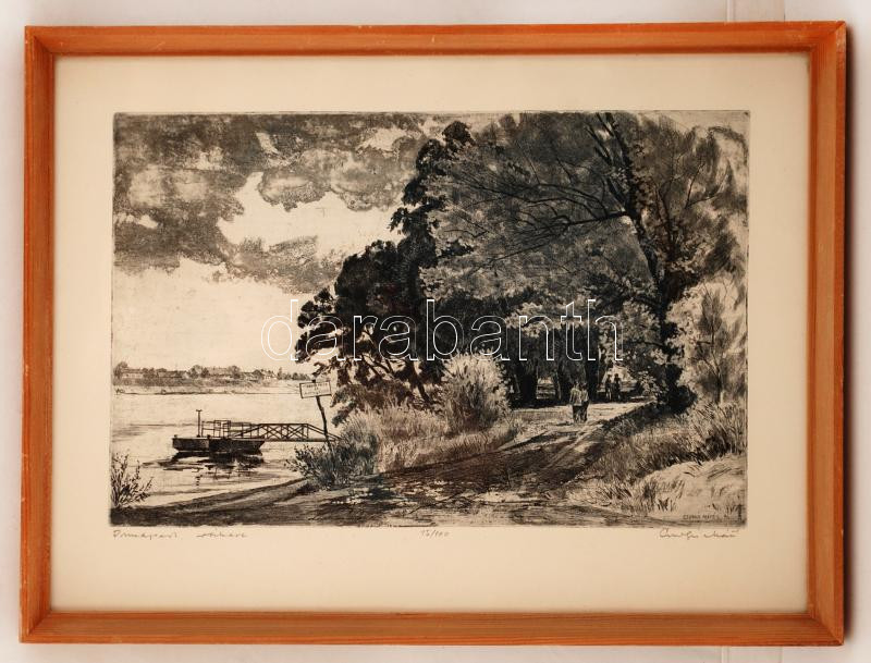 Csurgói Máté Lajos (1931-2001): Dunapart. Rézkarc, papír, jelzett, 26×...