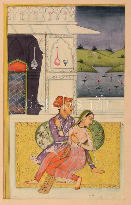Erotikus jelenet a Káma-szútrából, vegyes technika, papír, jelzés nélk...