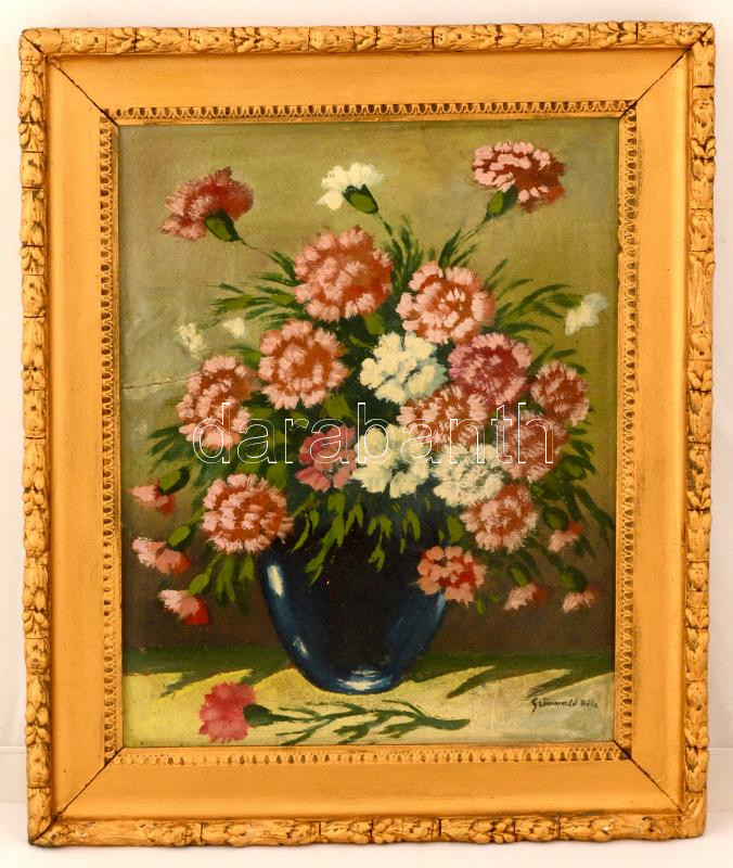 Grünwald jelzéssel: Virágcsendélet. Olaj, farost, keretben, 44×34 cm