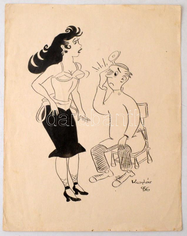 Koplár jelzéssel: Orvosnál, karikatúra, tus, papír, 30×21 cm