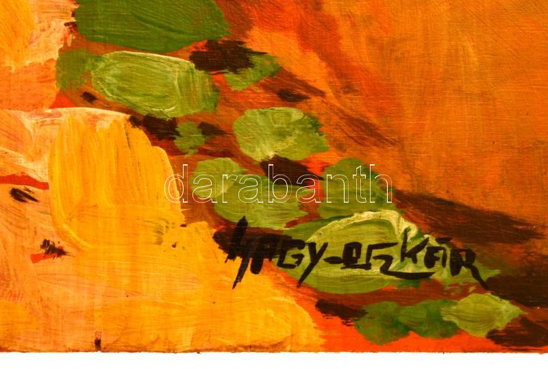 Nagy jelzéssel: Utca részlet. Olaj, falemez, 45×40 cm