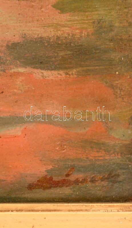 Olvashatatlan jelzéssel: Puli. Olaj, farost, üvegezett keretben, 34×42 cm