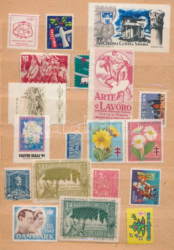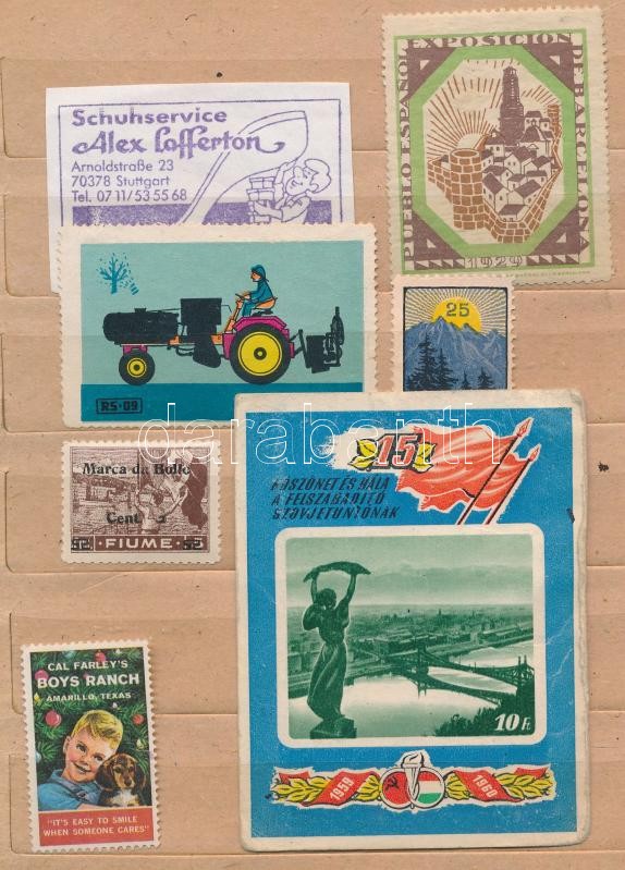 230 db levélzáró, parafilatélia, okmánybélyeg 8 lapos kis berakóban
