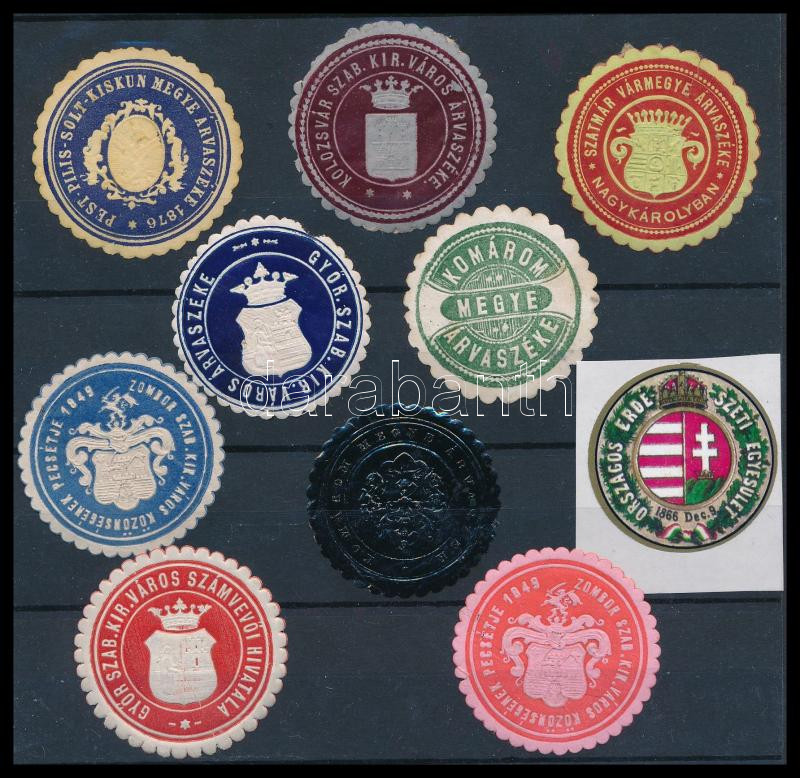 Árvaszékek, számvevő hivatal 9 klf pecsétbélyeg, közte 1 db fekete + O...