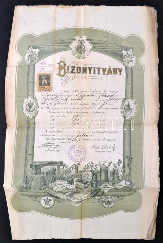 https://www.darabanth.com/en/272-Online-auction/272.0/Other-collectibles/Printed-Materials~47/1907-Bizonyitvany-szabo-tanoncnak-Omoroviczai-Ipartestulet-hajtogatva-kisse-viseltes-allapot~II1388373