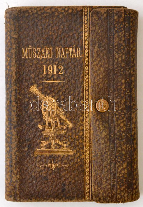 1912 Műszaki naptár. Rengeteg hasznos adattal, néhány, információt nem tartalmazó naptárlap hiánnyal, 416p. Egészbőr kötésben
