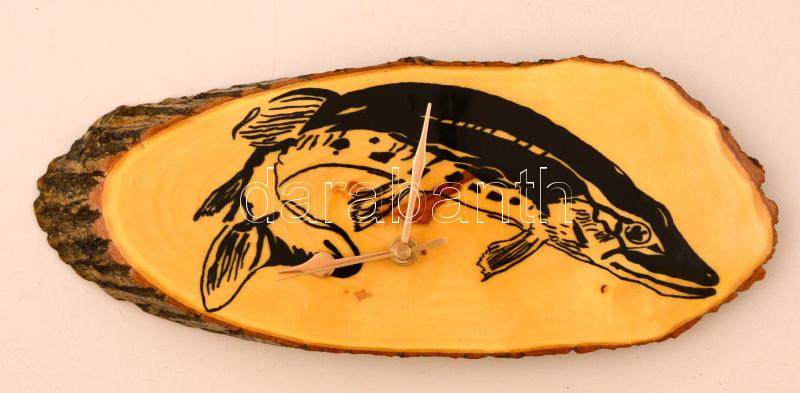 Csukamotívumos fa falióra, újszerű állapotban, 13,5×34 cm