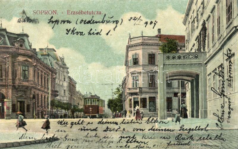 Sopron, Erzsébet utca, villamos, kiadja Kummert L. utóda (fa)