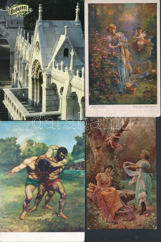 Description: 60 db főként MODERN motívumos és városképes lap; művészlapok, Budapest, vallás / 60 mostly modern motive and town view postcards; art, religion, Budapest