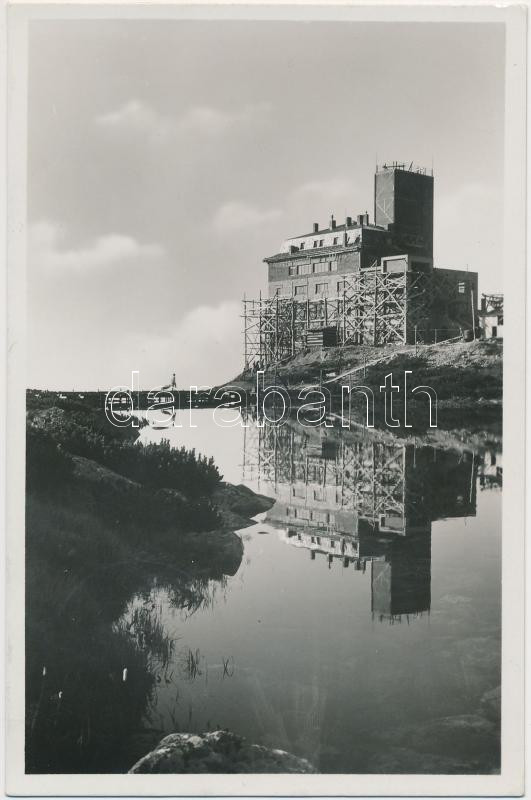 Tátra, Függővasút állomás a Lomnici csúcsra, építkezés, Kőpataki-tó / stanica lanovky / cable car station construction