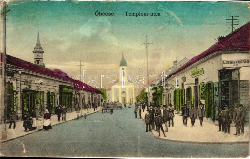 Óbecse, Becej; Templom utca, Kiss Pál, Markovics József üzletei, kiadj...
