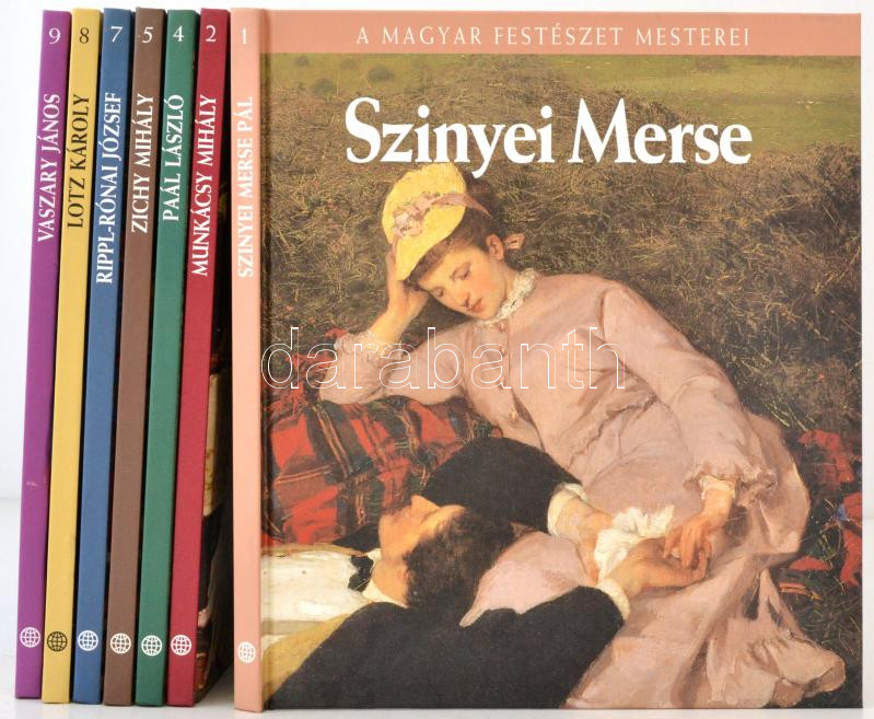 7 db. a Magyar Festészet Mesterei sorozatból: 1. Szinnyei Merse, 2. Munkácsy Mihály, 4. Paál László, 5. Zichy Mihály ,7. Rippl-Rónai, 8. Lotz Károly, 9. Vaszary János kötetek. Budapest, 2009, Kossuth Kiadó-Magyar Nemzeti Galéria. Kiadói kemény papírkötés. Jó állapotban.