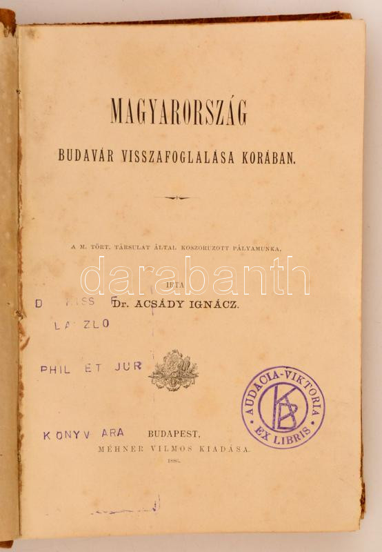 Dr. Acsády Ignácz: Magyarország Budavár Visszafoglalása Korában. Budap... https://www.darabanth.com/en/273-Online-auction/273.0/Books/Books-History~16/Dr-Acsady-Ignacz-Magyarorszag-Budavar-Visszafoglalasa-Koraban-Budapest-1886-Mehner-Vilmo~II1389818
