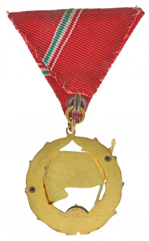 Description: 1954. "A Munka Vörös Zászló Érdemrendje" aranyozott, zománcozott Br kitüntetés mellszalagon, dupla függesztőkarikával T:2